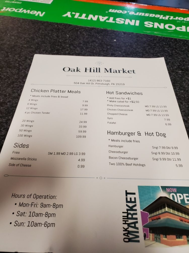Oak Hill Market Menu
